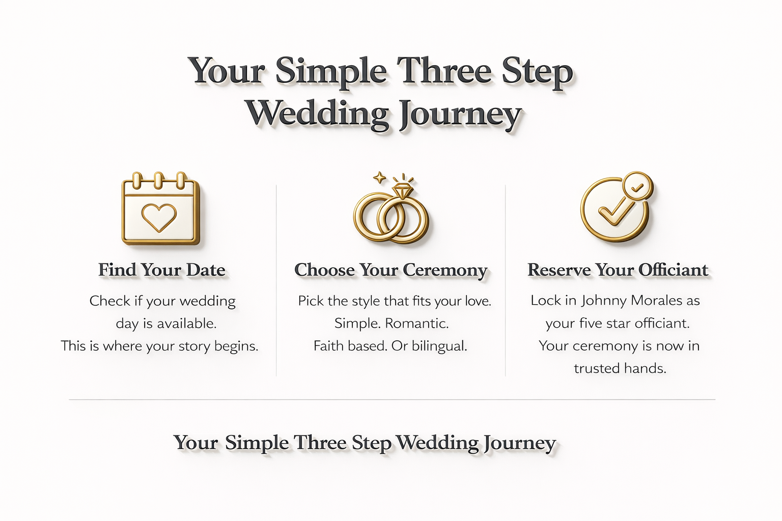 Led by a legal licensed or ordained wedding officiant Johnny Morales and Associates one of the most requested wedding officiants in Las Vegas with 25 plus years of officiant experience.